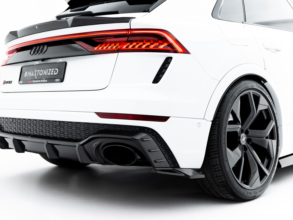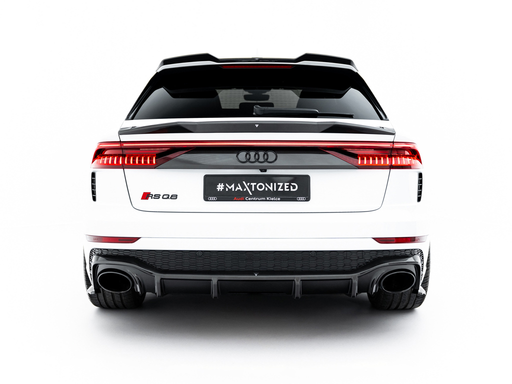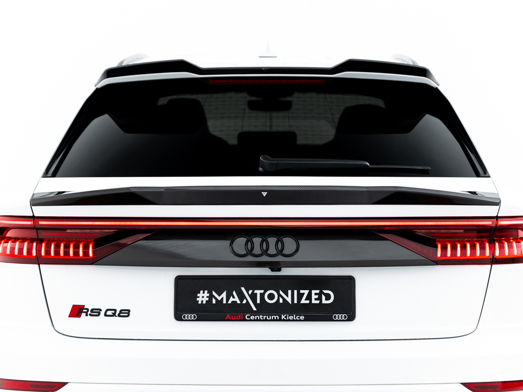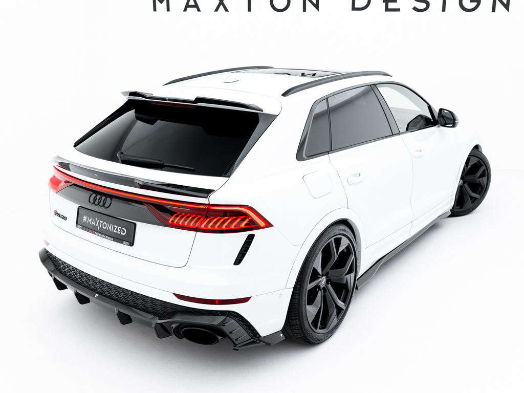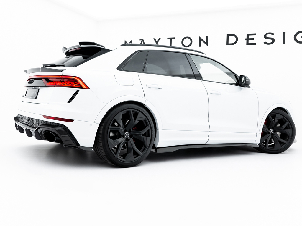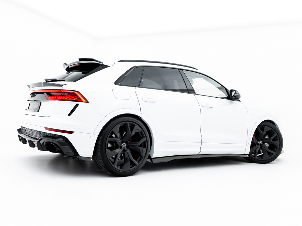 RS Q8に設定されているパーツはフロントスプリッター、サイドスカート、リアサイドスプリッター、リアディフューザー、テールゲートスポイラーの5タイプ。そのうちテールゲートスポイラーはアッパータイプ、ロアタイプの2種類のデザインが設定されております。