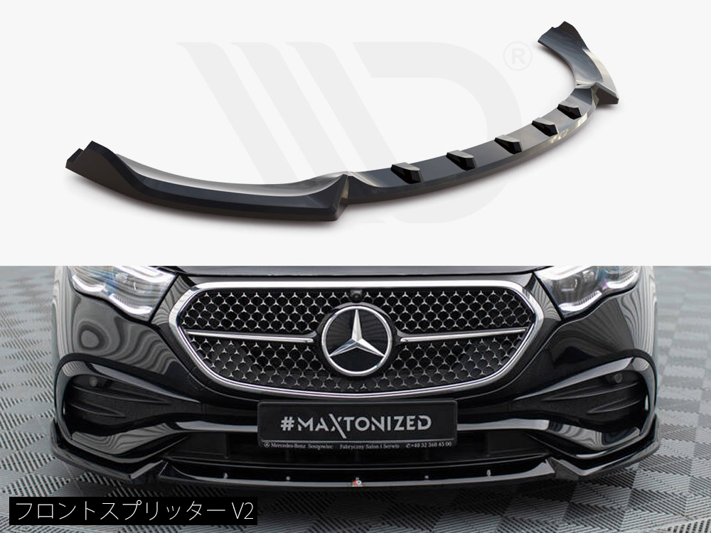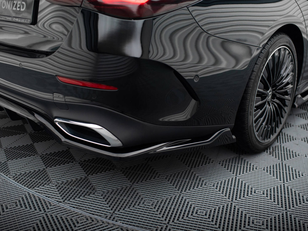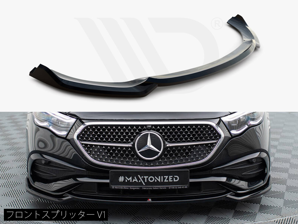 Eクラス AMGライン専用キットにはフロントスプリッター、サイドスカートディフューザー、リアスプリッター、スポイラーキャップの4タイプのパーツがラインナップ。フロントのみ2種類のデザインが設定され、お好きなデザインをお選びいただけます。