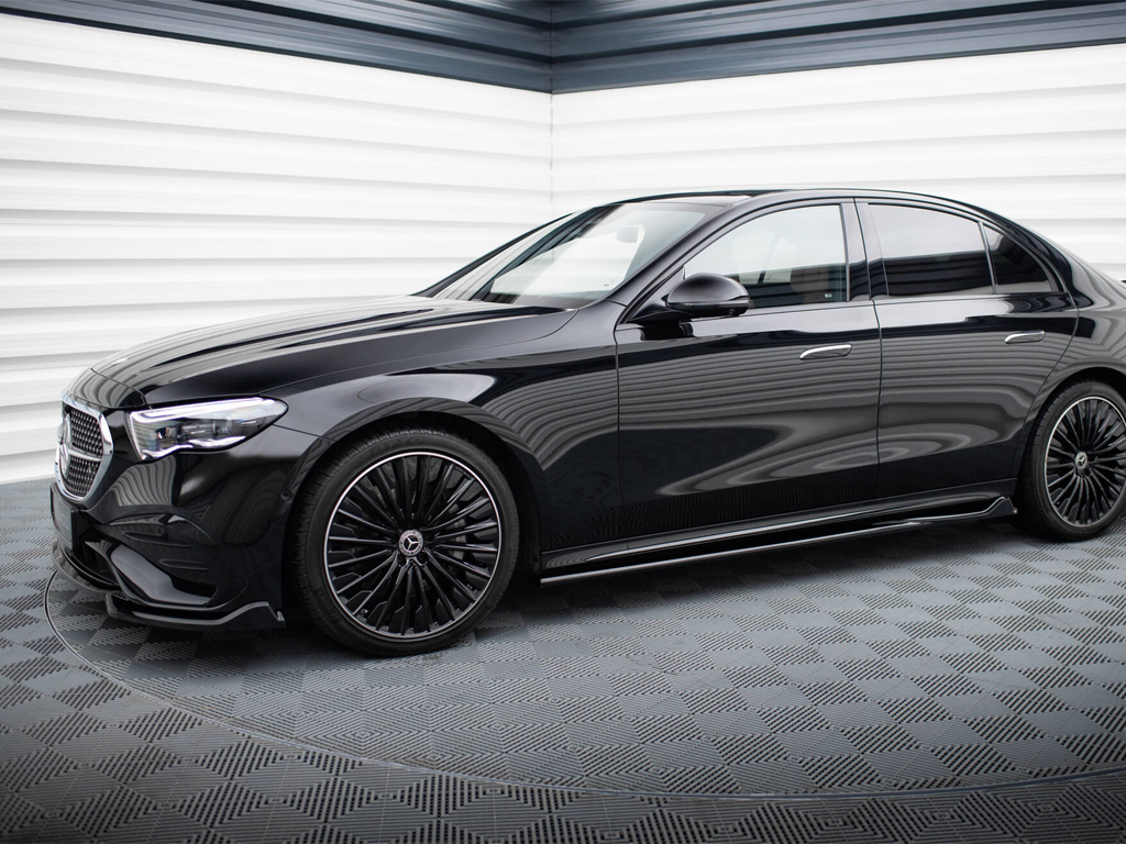 伸びやかなフォルムで、クラス以上のラグジュアリー感と質感を持つEクラスへ、スポーティさ上品に純正と調和するようにプラスすることができ、新しい個性を纏った魅力あるスタイリングへ仕上げられます。また本キットはセダンとワゴンの2ボディタイプにも対応しております。