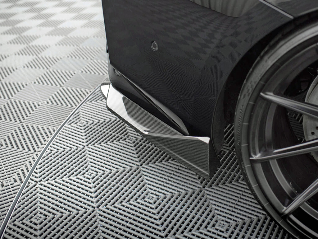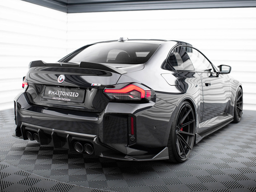 M2 クーペ (G87型)専用のキットに含まれるパーツにはウィングレットが付いており、スポーティさを前面に意識したデザインが特徴です。純正から低く、そしてワイドに見せるスタイリングは、その存在感を強く前にアプローチすることができるので、刺激的な新しい個性を作り上げます。