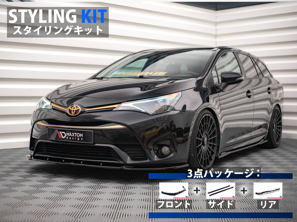 アベンシス ワゴン専用キットにはフロントスプリッター、サイドスカートディフューザー、リアスプリッター、スポイラーキャップの4タイプのパーツがラインナップ。フロント用は2種類のデザインが設定され、お好きなデザインをお選びいただけます。
