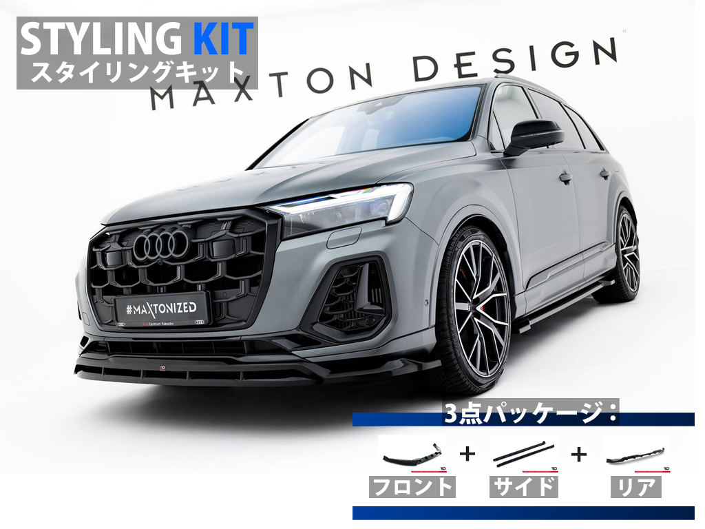 スポーツクーペモデルとしてQ8/SQ8が存在しますが、Q7はSUVらしい堂々したスタイリングが特徴です。そのQ7をスポーティなスタイリングへ変化を付け、また車全体にボリューム感を作り上げ、より力強い存在感を演出できるのがMaxton Design UKが取り扱うQ7専用キットの強みです。