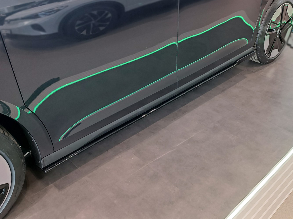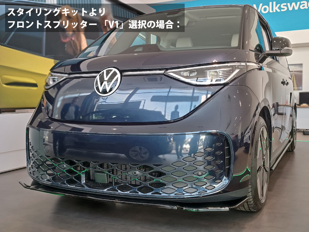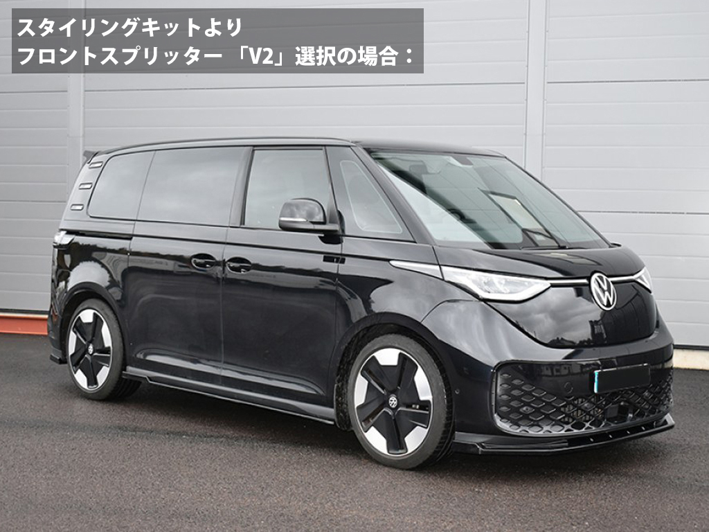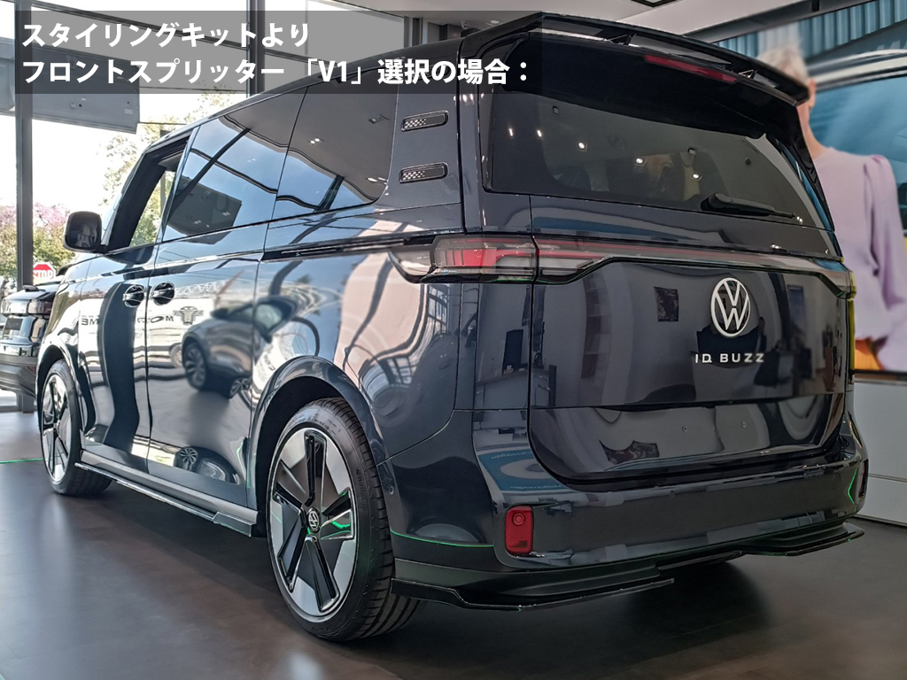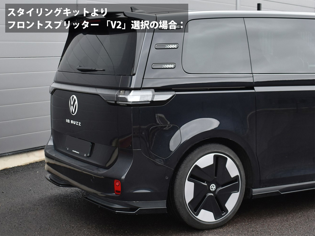 ID. BUZZ専用キットにはフロントスプリッター、サイドスカートエクステンション、リアスプリッター、ルーフスポイラーの4タイプのパーツがラインナップ。フロントは2種類の中からお好きなデザインをお選びいただけます。