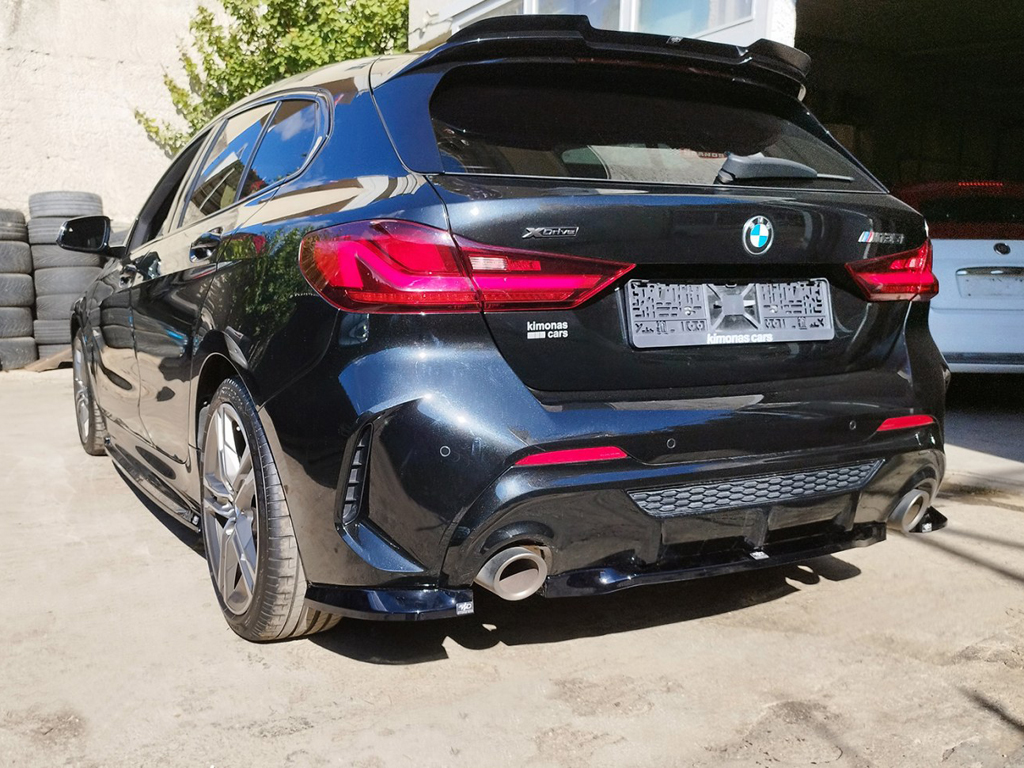 BMW 1シリーズ M135i向けにはフロントスプリッター、サイドスカートエクステンション、リアサイドスプリッター、リアセンタースプリッター、スポイラーキャップ、ルーフスポイラーの6タイプのパーツがラインナップ。