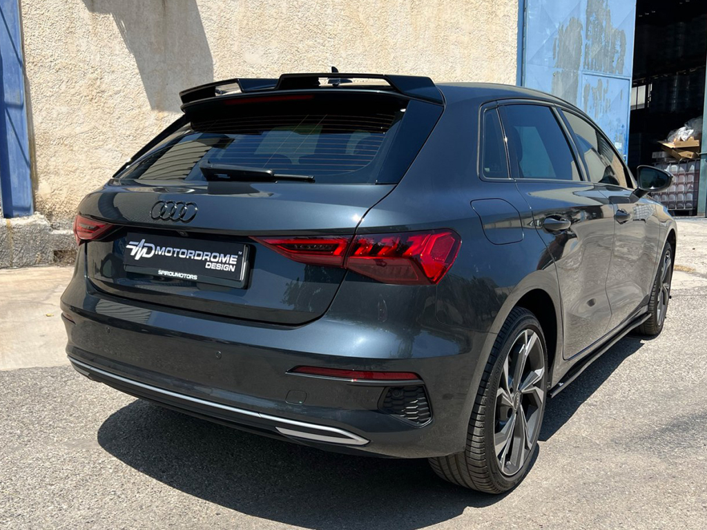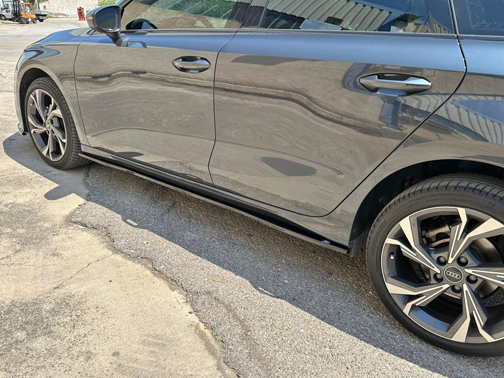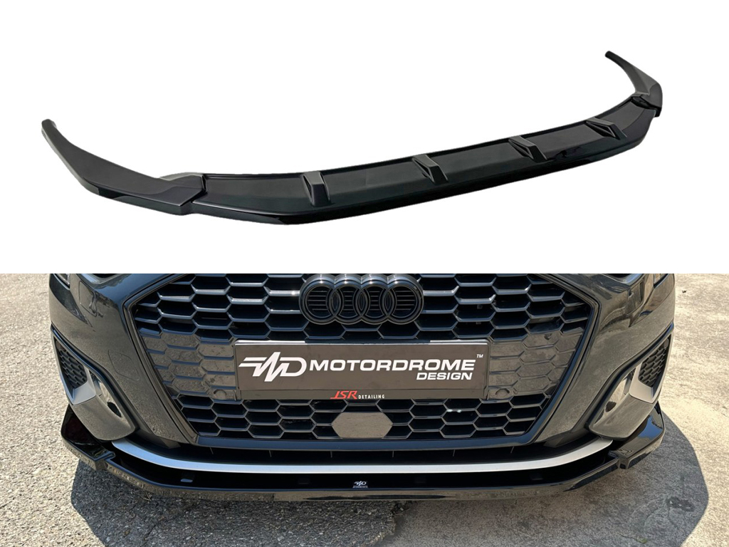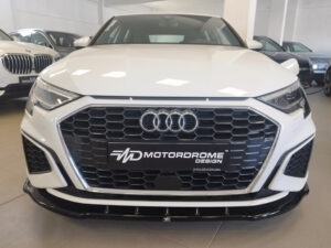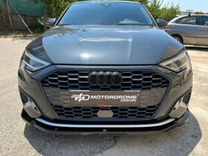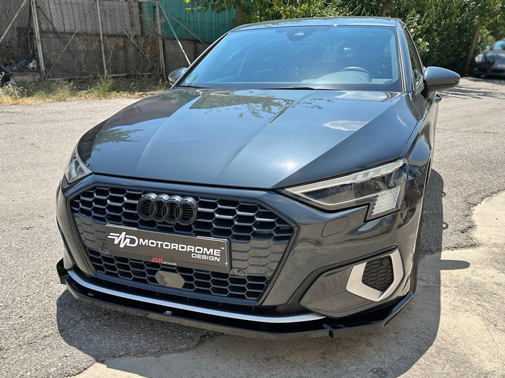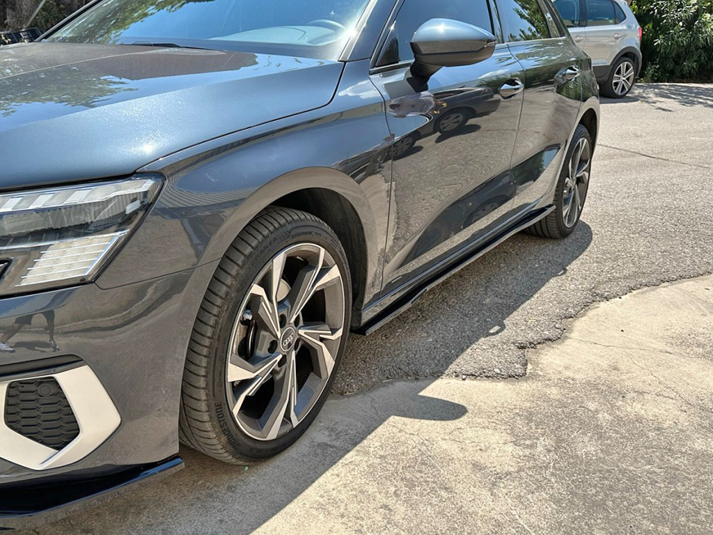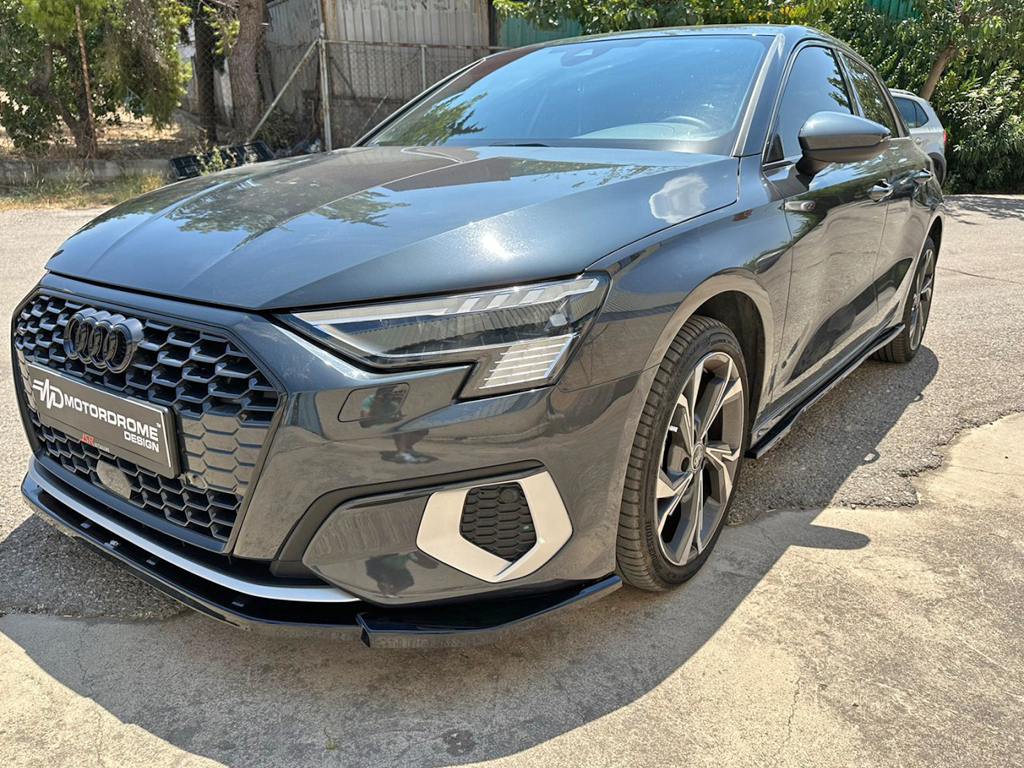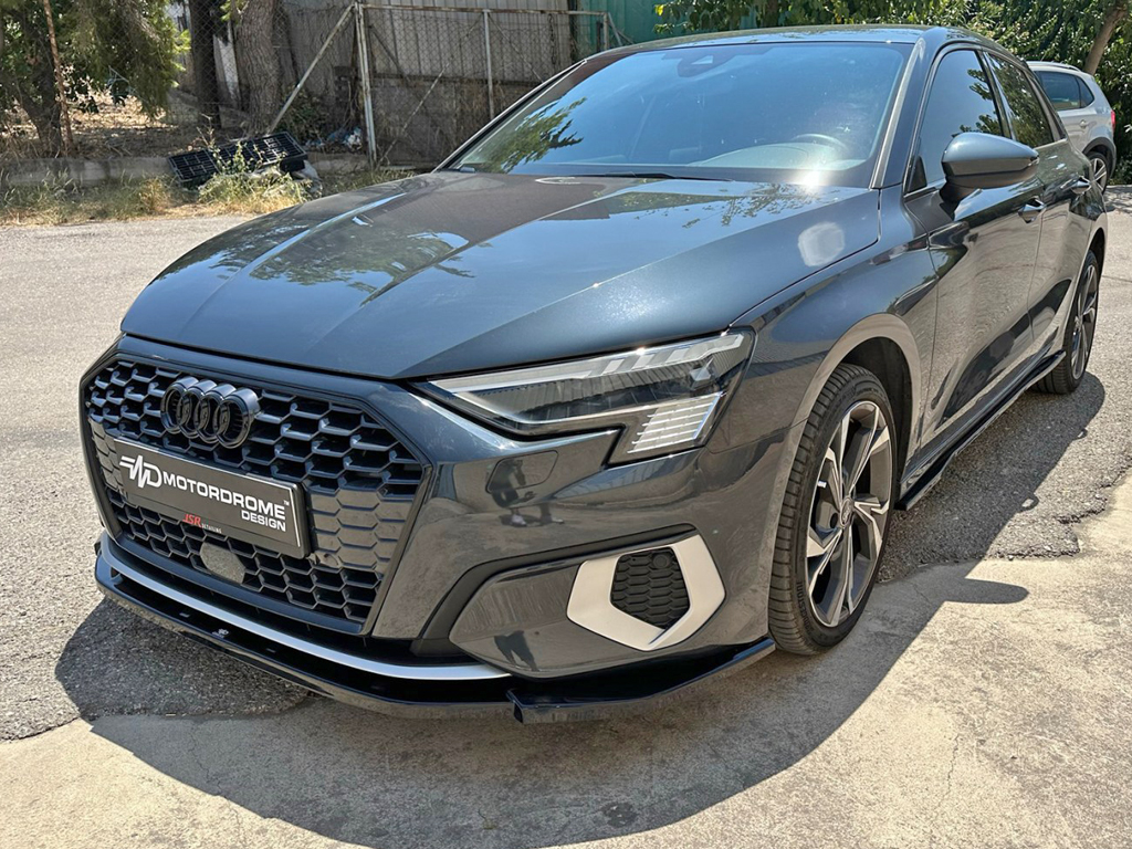 アウディ A3 ベースモデル (8Y/前期)向けにはフロントスプリッター、サイドスカートエクステンション、ルーフスポイラーの3タイプのパーツがラインナップ。フロントとサイドはセダン/スポーツバックの両ボディタイプ別に対応しておりますが、ルーフスポイラーはスポーツバック専用品となります。
