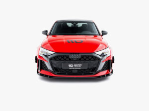 アウディ RS3 セダン向けの専用キットにはフロントスプリッター、サイドスカート、リアディフューザー、リアサイドスプリッター、テールゲートスポイラーの5タイプのパーツがラインナップ。サイド/テールゲートの2タイプにおいては複数のデザインが設定され、お好きなデザインをお選びいただけます。