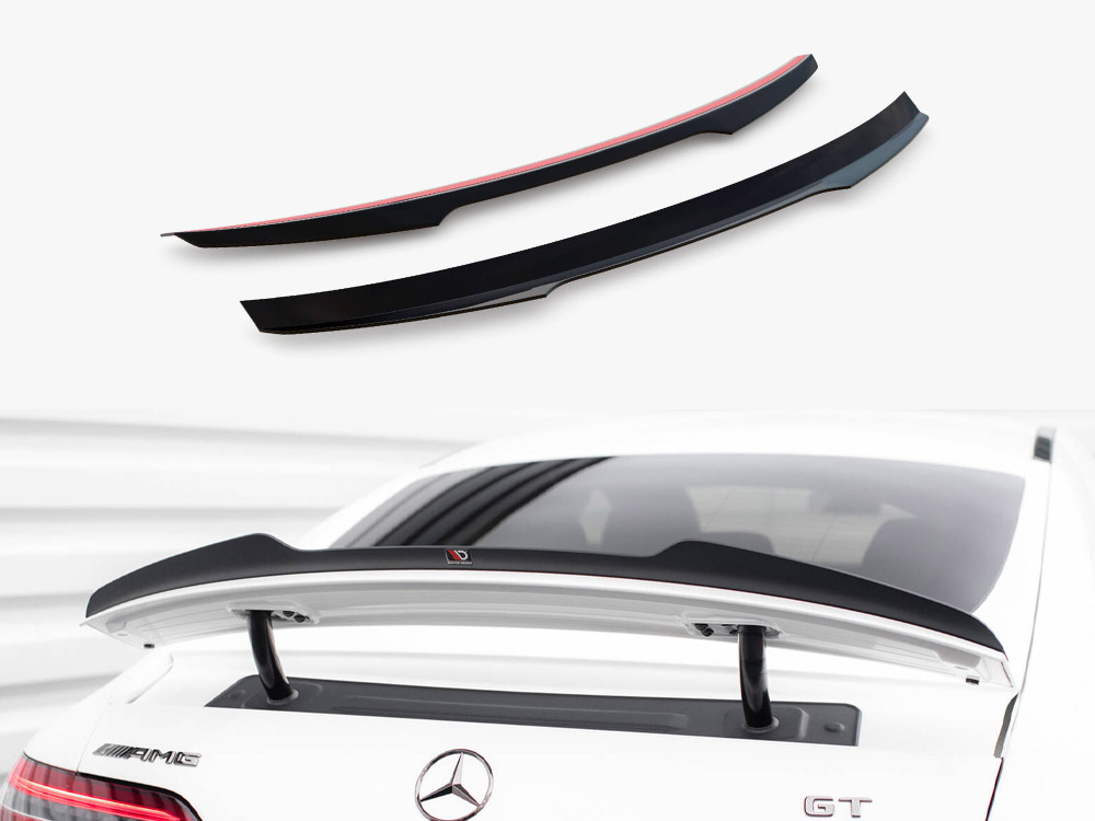 メルセデスAMG GT 43/53専用キットにはフロントスプリッター、サイドスカートディフューザー、リアスプリッター、スポイラーキャップの4タイプのパーツがラインナップ。なおフロントのみ2種類のデザインが設定され、お好きなデザインをお選びいただけます。