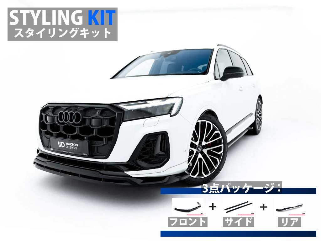 アウディ SQ7 専用キットにはフロントスプリッター、サイドスカートディフューザー、リアスプリッター、スポイラーキャップの4タイプのパーツがラインナップ。また当店オリジナルのパッケージ商品「スタイリングキット」もご用意しております。