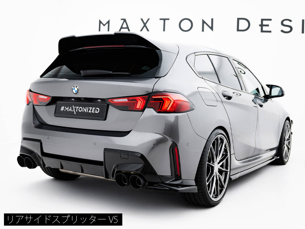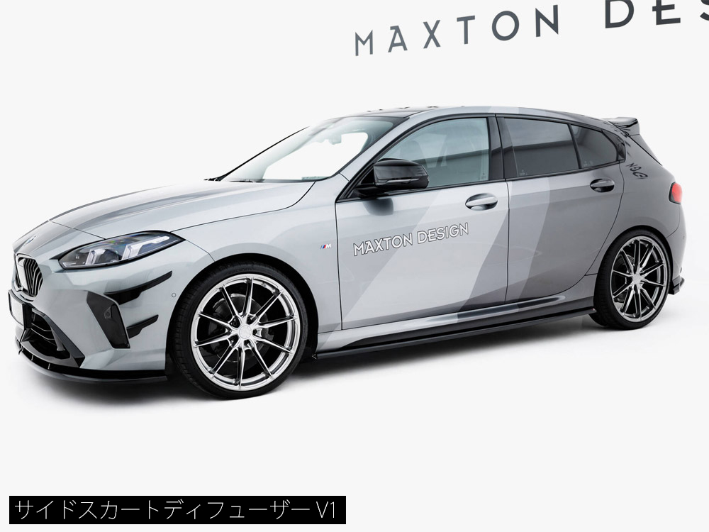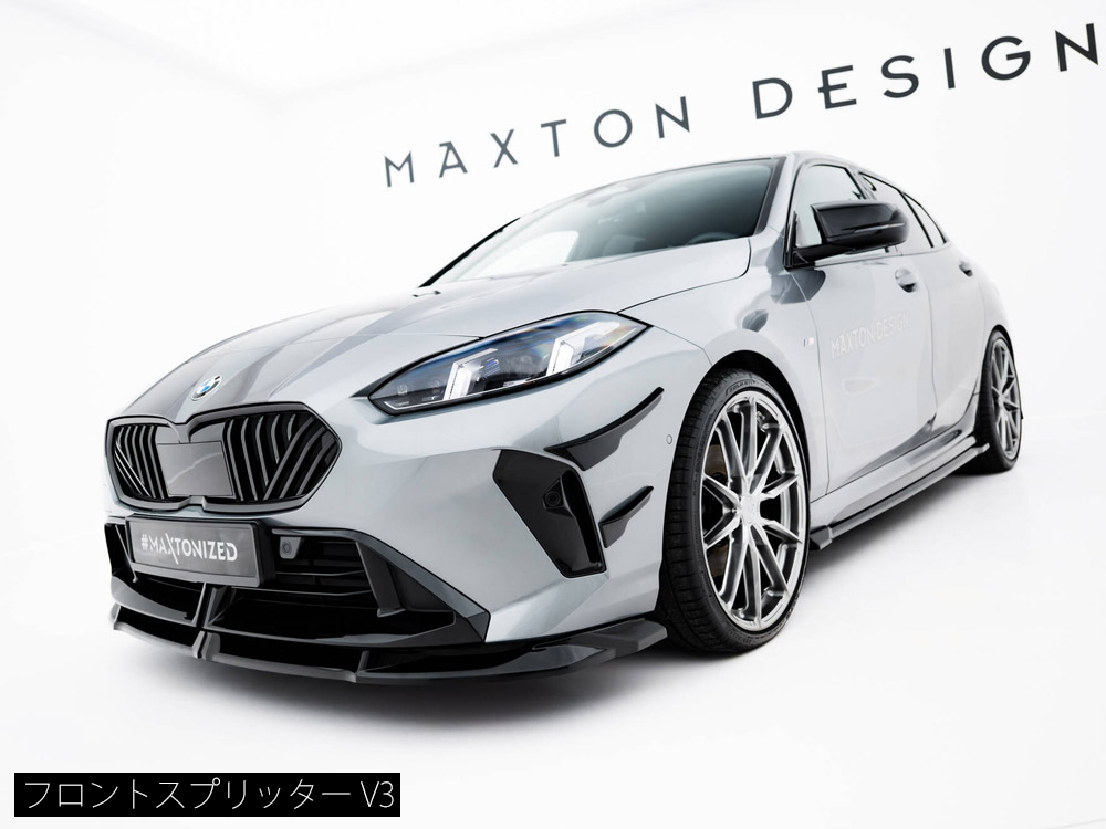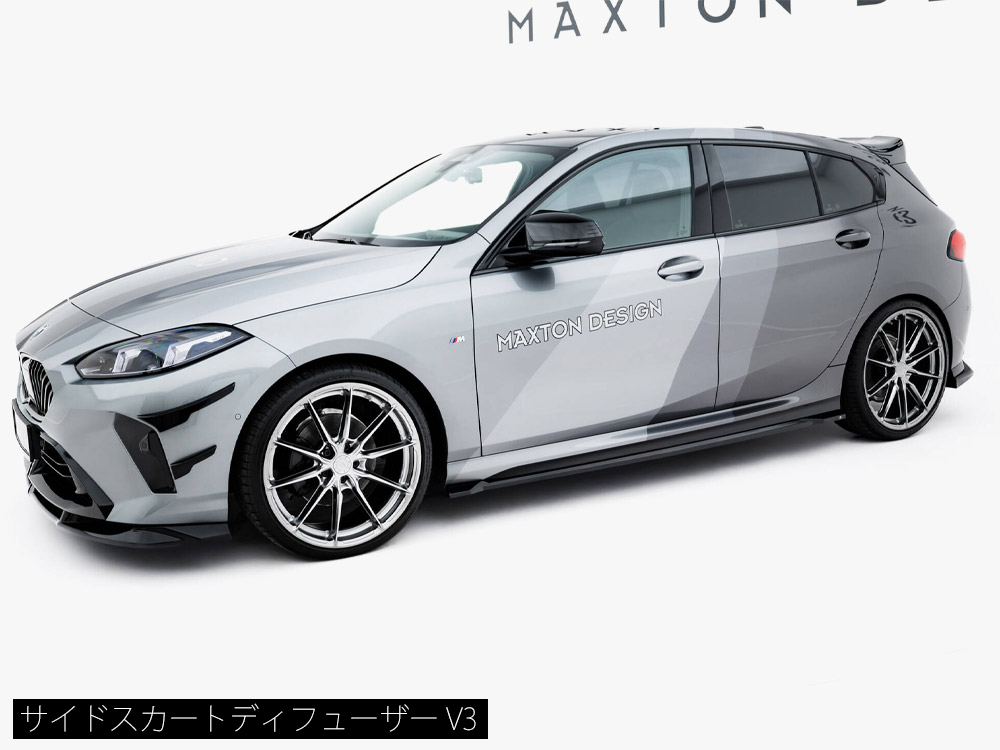 BMW 1シリーズ M135専用キットにはフロントスプリッター、サイドスカートディフューザー、リアサイドスプリッターのベーシックな3タイプのパーツがラインナップ。フロント/サイドの2商品は複数のデザインが設定されており、お好きなデザインをお選びいただけます。