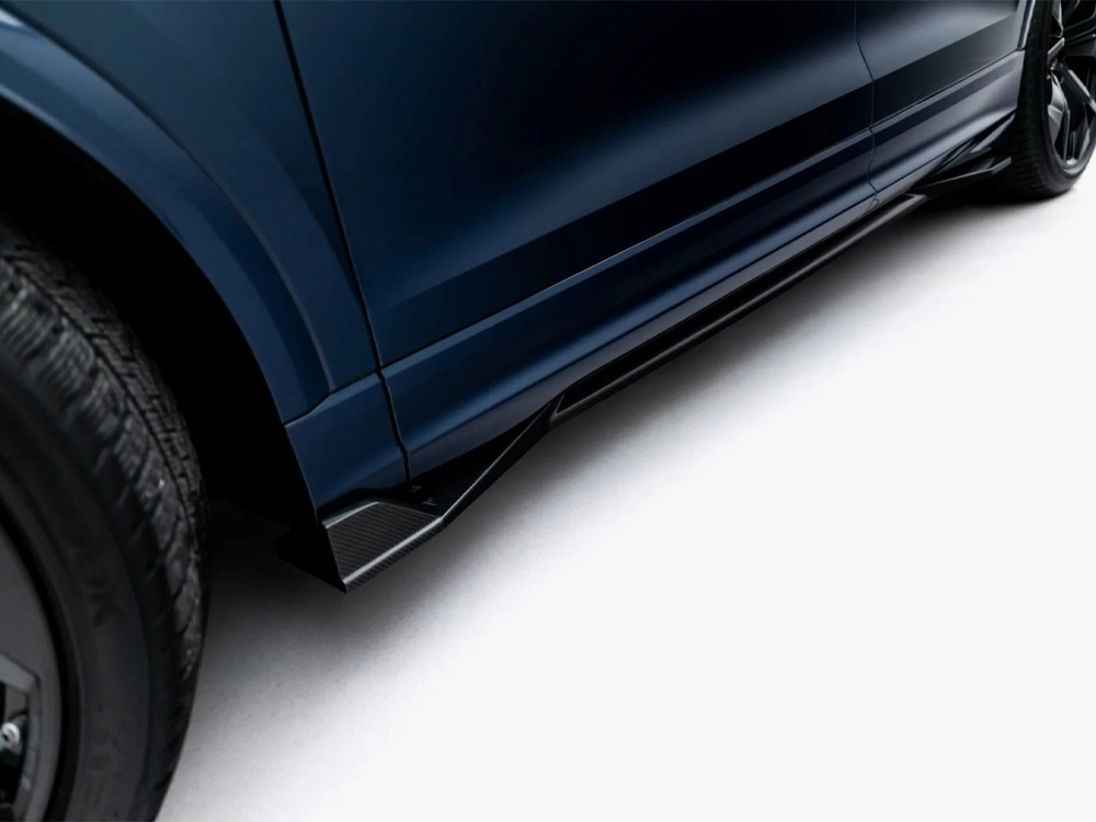 アウディ RS Q8 (後期型)向けの専用キットにはフロントスプリッター、サイドスカート、リアスプリッター、スポイラーキャップの4タイプのパーツがラインナップ。そのうちスポイラーキャップは2種類のデザインが設定され、各ニーズに合わせて選択/カスタムできる自由度がございます。